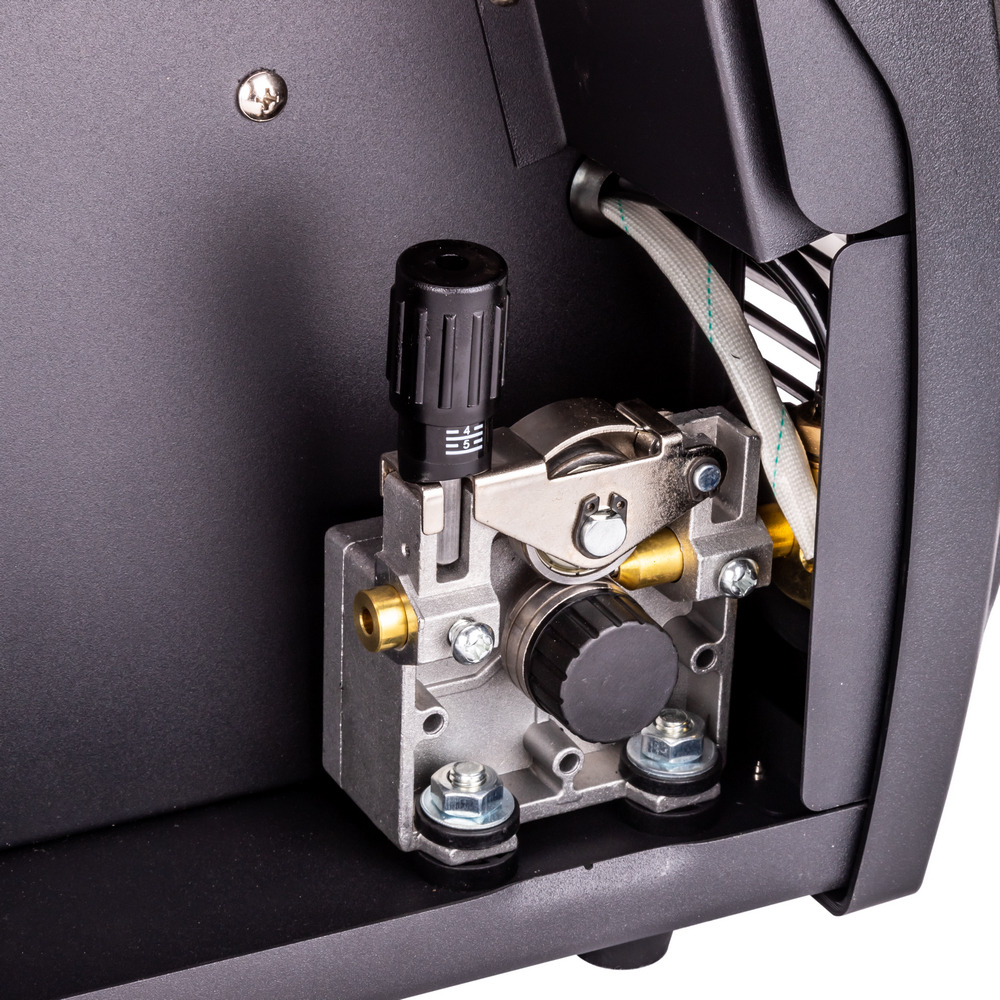 - Аппарат выполнен в виде моноблока и оснащён встроенным механизмом подачи сварочной проволоки с двумя роликами.